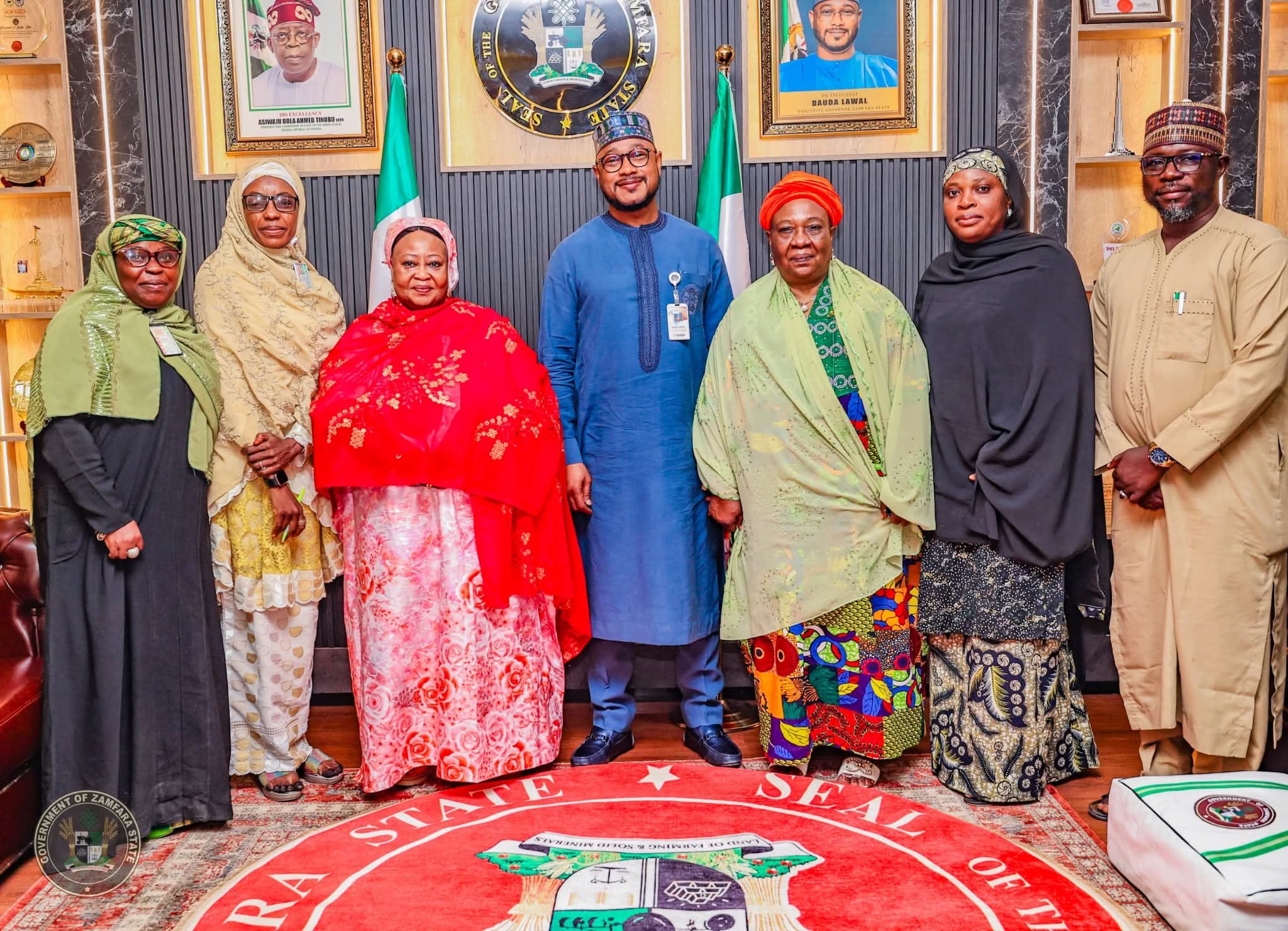 The National Chairperson of the Nigeria Association of Women Journalists (NAWOJ),Hajia Aisha k.Bura led a delegation on a courtesy visit to His Excellency, Dr. Dauda Lawal, Governor of Zamfara State,